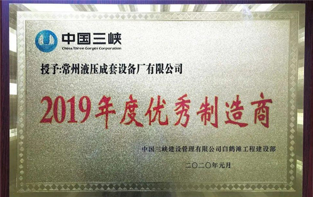 熱烈祝賀我公司在白鶴灘水電站工程中被授予 “2019年度優(yōu)秀制造商”的光榮稱號